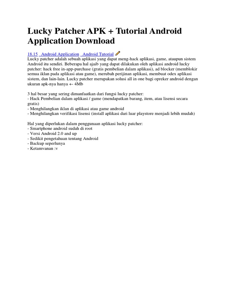 To use all features, you need a rooted device. Semua video berikut ini dapat anda tonton dan download dengan mudah. Ini memungkinkan modifikasi aplikasi dan game, mengubah izin aplikasi, memblokir iklan yang tidak diinginkan, dan banyak lagi. Anda dapat mengubah izin, menghindari iklan yang mengganggu, cukup mencadangkan aplikasi. Cara menginstall aplikasi lucky patcher.
